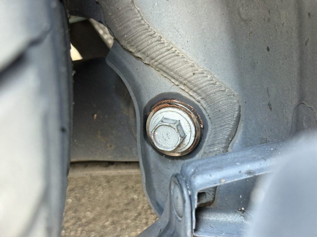 こちらは車検とは関係ありませんが、乗り心地に少し物足りなさを感じられているということで、簡単な補強パーツを追加します。今回はSpoonのリジカラを取り付けます。こちらのパーツはサブフレームやアクスルの剛性を高め、サスペンションの動きを良くしてくれる効果があります。それによる乗り心地の変化は体感しやすく、高級感が増す印象です。