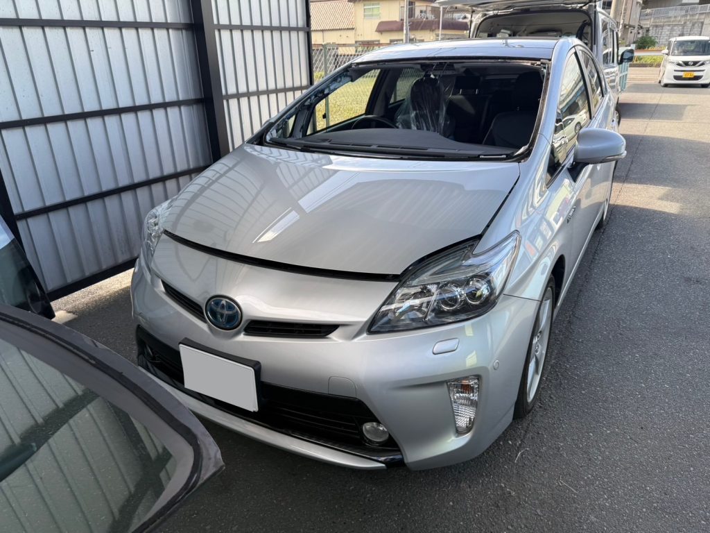 フロントガラスのモールの交換は、ガラスの脱着が必要となりますので、専門業者様へ委託となります。30プリウスのフロントガラスは扱いが難しく割れやすい特徴があるそうで、ガラス交換前提での作業もオススメではあります。
