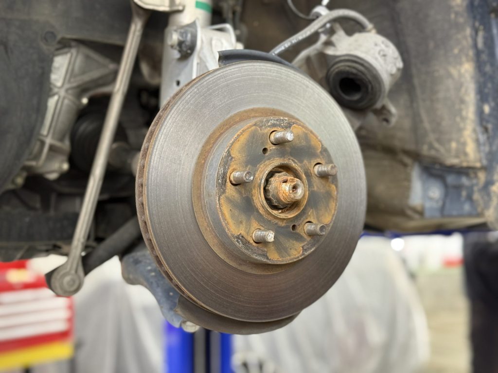 ブレーキに関しては、軽い錆が出ています。ディスクローターは大きな減りや段付きなどは無い状況です。
