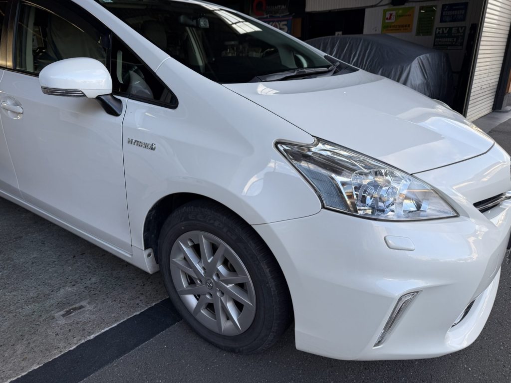最後になりましたが、今回は京都府より、車検と絡めて異音の修理をご依頼いただきました。ご新規でのご来店誠にありがとうございます。プリウスαは現状のトヨタ車のラインナップで丁度良い同クラスの車両が無く、長く乗り続けたいとお考えの方が増えている印象を受けます。弊社としてもこれから長く乗り続けて頂く価値のあるお車だと考えていますので、プリウスαで同様のお悩みを抱えている方がおられましたらお気軽にご相談ください。よろしくお願いいたします。