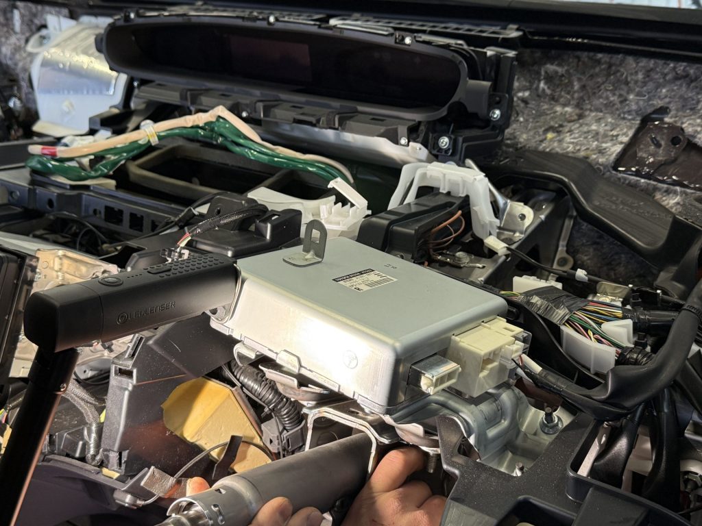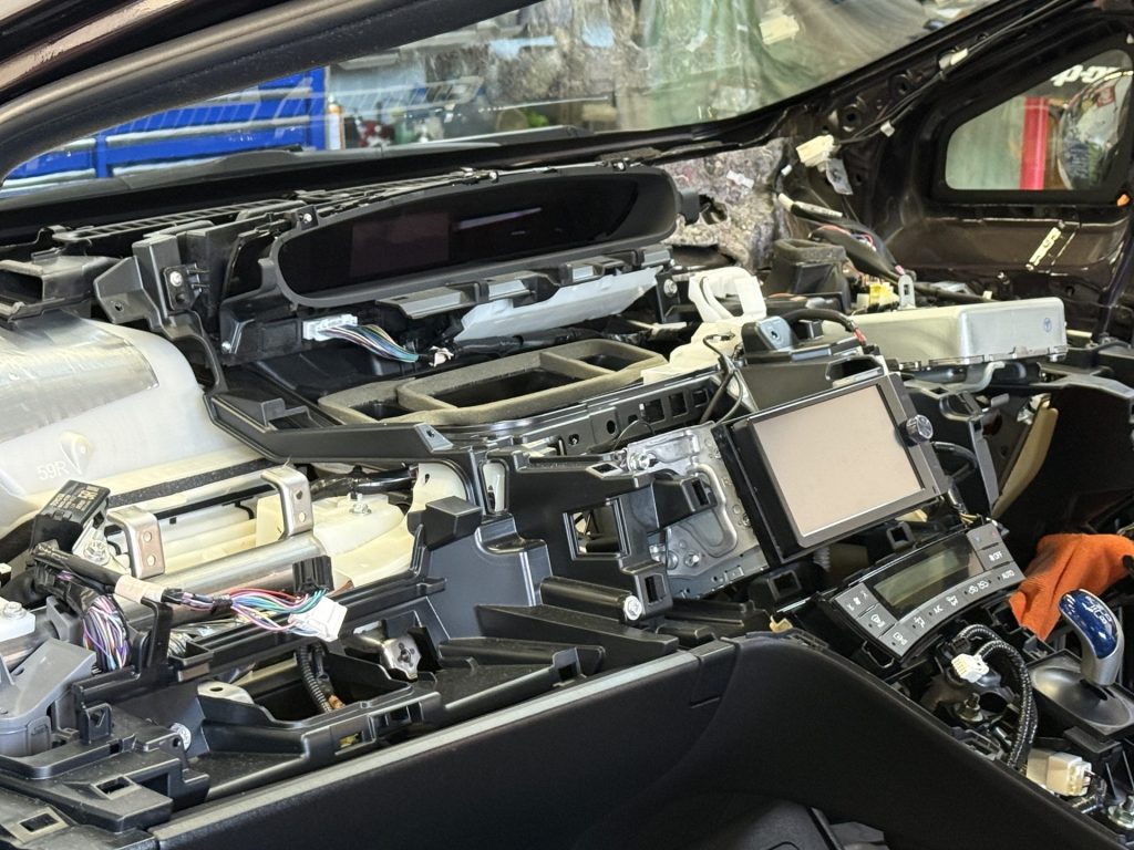 異音の確認を行ったところ、比較的軽微ではありますが、ステアリングコラム内部からの異音が確認できました。お客様のプリウスはツーリングセレクションで、昨今ではステアリングコラム内部、パワーステアリングモーター周辺からの異音が発生する事例が増加しています。