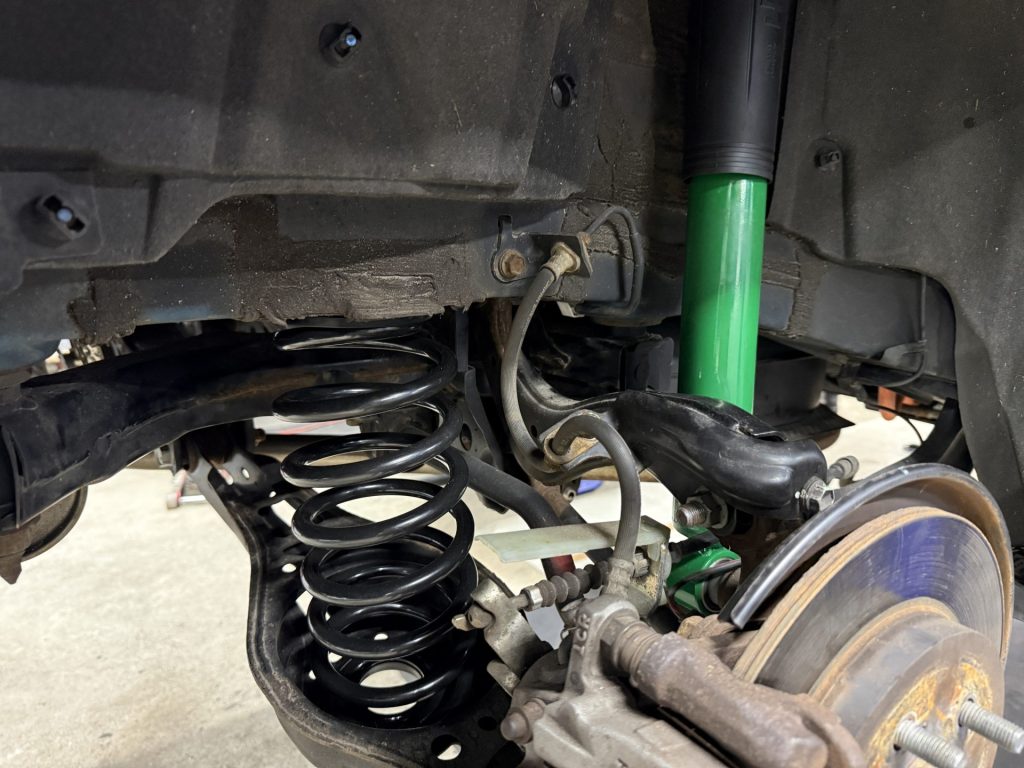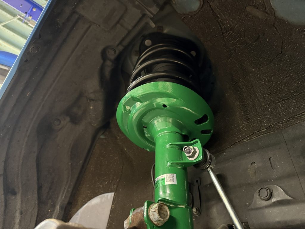 サスペンションが新品になるだけでも走行性能は高まりますが、せっかくの良い足回りの良さをさらに高めていくため、補強パーツも取り付けていきます。