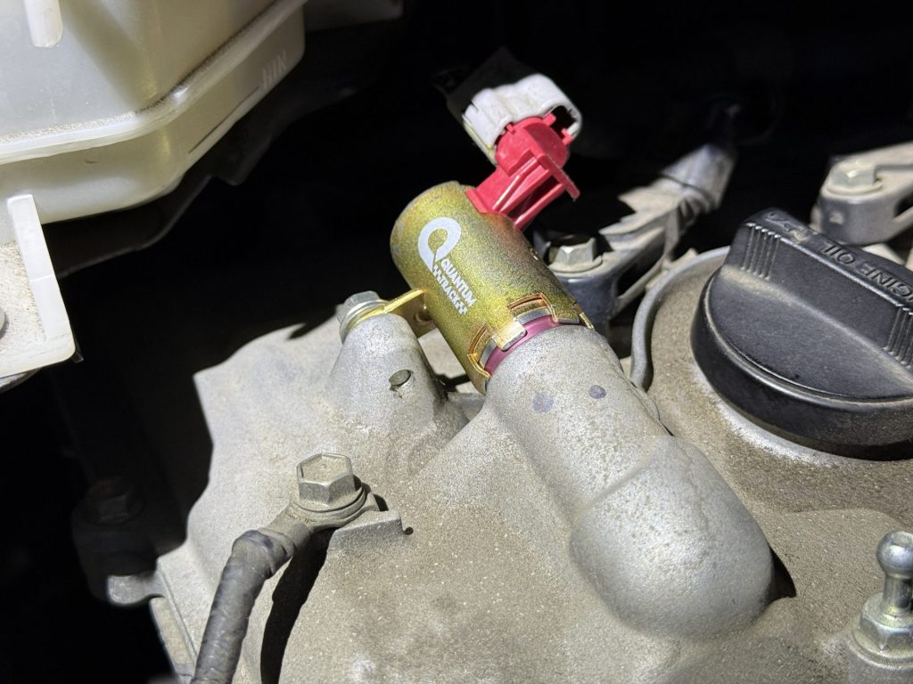 プリウスの馬力をアップさせることができるQuantum Solenoidnの取り付けです。こちらを取り付けていただける場合は簡単な点検も同時に行わせていただくことも可能です。