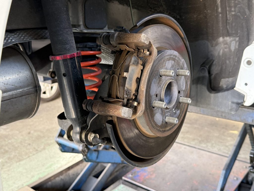 今回お客さまからのご依頼はブレーキパッド、ディスクローターの交換(アップグレード)でしたが、単純にそれらの交換だけでは良いパーツの性能を活かし切ることができません。