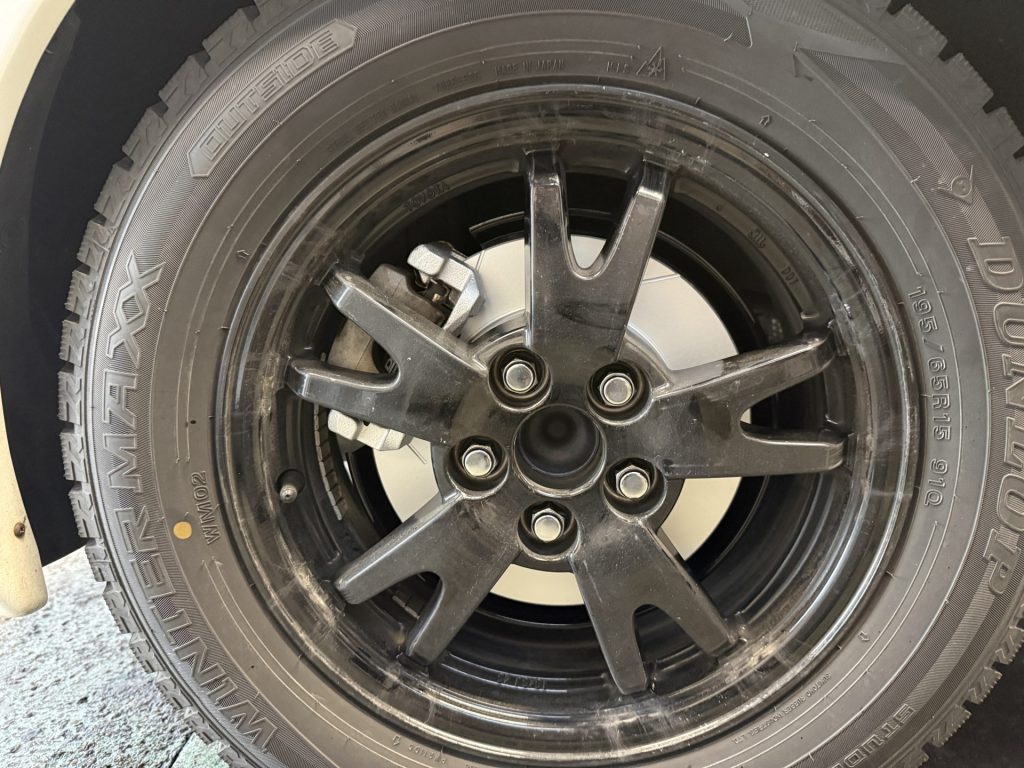 ホイールからチラリと見えるスリットローターもスポーティーさを演出してくれます。現状はスタッドレスタイヤを装着されていますが、夏用タイヤのホイールになれば存在感も増してくるかなと思います。