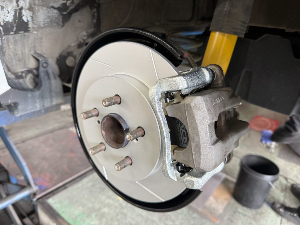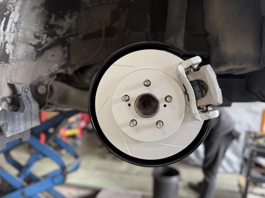 最後になりましたが、今回は長野県よりお越しいただきました。遠方からのご来店誠にありがとうございます。完成後は、ボディとのバランスの良いBBS製のホイールから見えるスリットローターが、スポーティな雰囲気を演出してくれます。